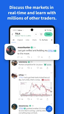Discuss the markets in real-time with millions of other traders and investors. Share commentary and ideas with charts, photos and GIFs. Share, like, reply to posts, and follow other investors.