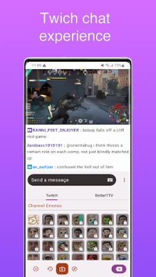 Mobile Twitch Chat: Chat with your favorite streamers and the Twitch community directly on your mobile device. Easily access chat channels and join the conversation in real-time.