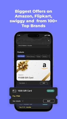 - Brand Gift Cards: Enjoy discounts on Swiggy,Zomato,Amazon Shopping, Flipkart,Myntra,Nykaa,Blinkit, Uber, Ajio, and 200+ brand gift cards.