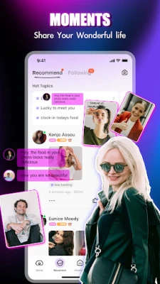 Share your story with the world! Show us your funny pictures or charming voice by posting moments to earn likes, moments and gifts!