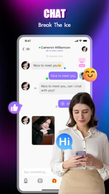 Meet and Chat online,no longer feel embarrassment before you start chatting, though our smart topics robot to say hello, which help you chat easily.