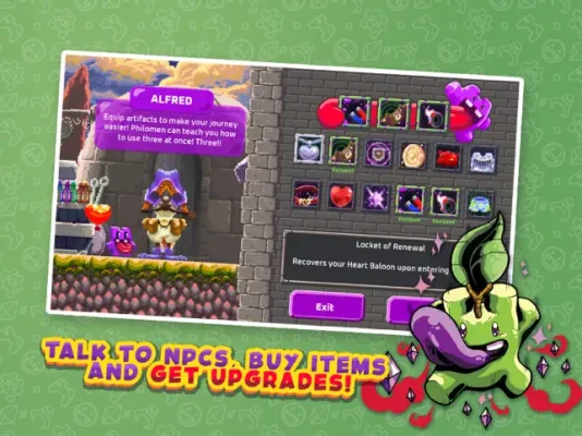 Talk to NPCs, buy items and get upgrades!