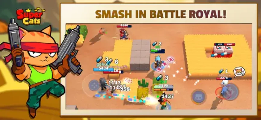 Play with your friend and start an intense and exciting match. Enjoy unexpected excitement with random maps and game modes. Unlock dozens of powerful cats and their SUPERB skin. Shoot, defend, jump and roll, control your super cats and win the battle with your amazing teammates from all over the world!