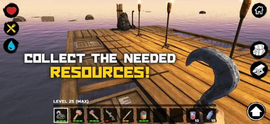- Get Resources: Use a hook to grab stuff floating by, like wood, leaves, and boxes.