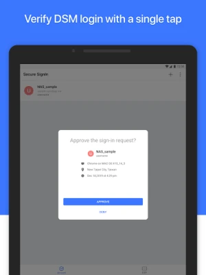 Synology Secure SignIn increases account security and offers two verification methods: Approve sign-in and verification code (OTP). Approve sign-in can be used to replace DSM password. For enhanced protection, use either method as the second sign-in step of 2-factor authentication.