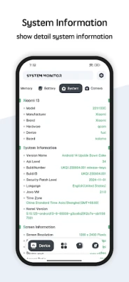 System Monitor for cpu and memory and battery. You can monitor cpu temperature and frequency at the same time. System Monitor show the cpu detail information including: cpu name, cpu core counts and cpu frequency. The cpu overheating protection will show the toast when cpu temperature is too high. Detail feature list: