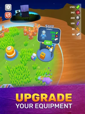 As a captain, conquer planets and improve your character. You will use your high tech pick axe for grinding the resources. Resources can make you rich! Upgrade your character's pickaxe, space suit and backpack!