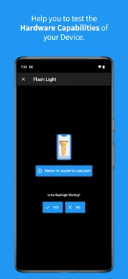 You can test your old or new phone using our app and understand the working condition of each hardwares. Test My Device helps in identifying the early defects of your Android mobile and give you a valuable insight. Our main features including the Display test, Touch Sensor test, Vibration test, Volume button's testing, Proximity sensor test, orientation sensor test, Battery test, wifi test, bluetooth test and so on.