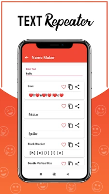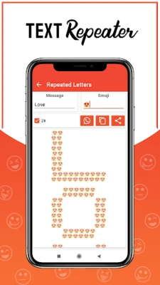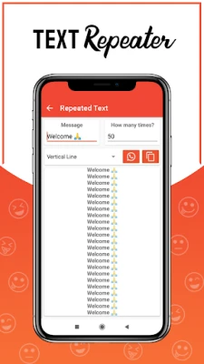 This Text Repeater app works with multiple text messages and stylish text apps. You can create awesome chat styles for what's app and facebook messenger and share them to your friends and loved ones over text messengers or social media apps. Stylish texts repeater is used to repeat same text multiple times. You can set text repeater limit, whether you want to print the message in the same line or in new line.