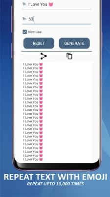 - Repeat Text: Text Repeater Mode! Type text or Emojis ONCE and repeat it as many times you want - text repeater - repeat up to 10 000 times!