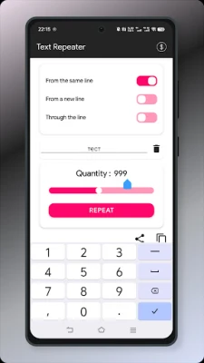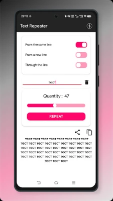 With this application, you can repeat some text several times. The text can be in one line, from one line to another, or alternate lines.