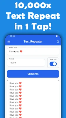 • Text Repeater (up to 10,000x): Repeat any word, phrase, emoji or copypasta in one click. High limits, smooth performance.