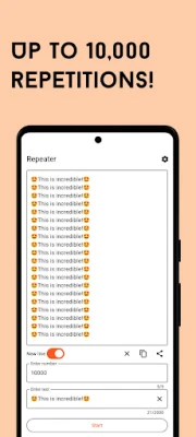 This is the core of the app — a repeat text generator that can duplicate any input up to 10,000 times. Whether you want to repeat a word, repeat a sentence, or flood a chat with a repeat text 10k message, this is your go-to.