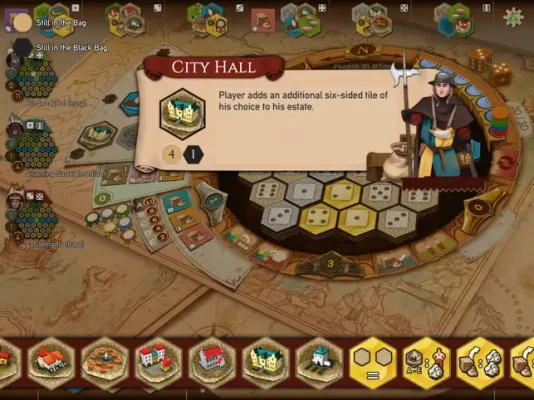 The Loire Valley during the 15th Century. As influential princes, the players devote their efforts to careful trading and building in order to lead their estates to prominence. Two dice set out the action options, but the players always make the final choices. Whether trading or livestock farming, city building or scientific research, many different paths lead to the prosperity and prominence of the players! The many ways to gain victory points in this building game require careful thought round after round along with extensive planning ahead. Thanks to the different estates, the game remains challenging for the players for a long time, as no two games play out alike. The winner is the player with the most victory points at the end of the game.