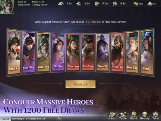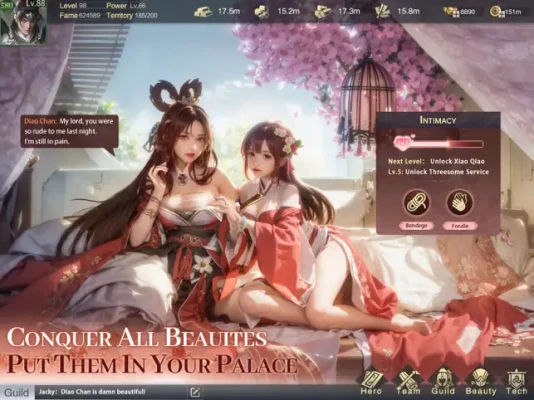 Put enemies' wife into your palace! Forge Intimate Partnerships on a captivating Three Kingdoms adventure where beauty and strategy collide. Discover mesmerizing consorts and cultivate intimate relationships. Together, conquer the realm and bask in the glory of love and victory.