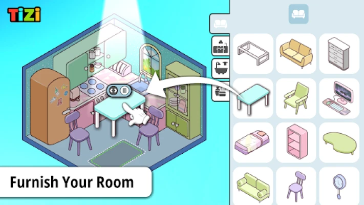 Immerse yourself in the art of room decoration with Tizi Town's comprehensive tools and features. As an interior designer, you'll have access to a wide array of furniture, wall colors, floor and decor items. Customize each room to suit your taste and watch as your vision comes to life in stunning isometric view.
