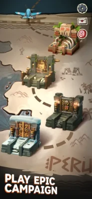 Travel through the golden arch-shaped doors of the treacherous underground tombs, across hazardous mountain caves, flourishing jungles and lush waterfalls.
