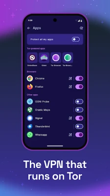 - App-level censorship resistance: When access is blocked, Tor VPN may help reconnect your essential apps to the internet. (Beta limitation: This early access version has limited anti-censorship capabilities and users may face connection issues)
