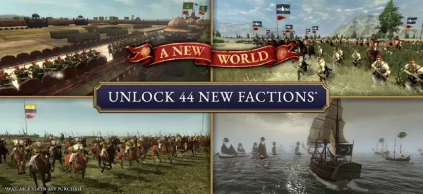 The massive ‘A New World’ expansion is now available via in-app purchase, unlocking 44 new playable factions, 2 new campaigns, plus 14 additional naval units.
