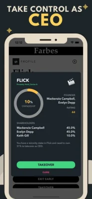 • Become a venture capitalist and get pitched on startups, buyout shareholders and takeover as CEO