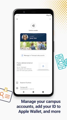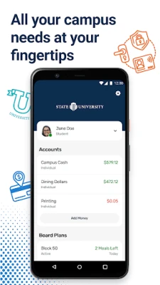 For users at participating campuses and institutions, eAccounts mobile makes it easy to view account balances, add money and track recent transactions. At select campuses, users can now add their ID card to the eAccounts app to access places like your dorm, the library, and events; or pay for laundry, snacks, and dinners using their Android phone.