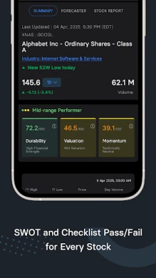 Skip bad investing advice with the Trendlyne mobile app. With 20+ 'only on Trendlyne' features, we are the most powerful stock market app. The Trendlyne mobile app brings you index market feeds, realtime screeners, analyst estimates and share price targets, and Trendlyne's trademark DVM Stock Scores. It also brings you unlimited realtime alerts, charts, research reports, SWOT, portfolio and watchlist tools,all in one powerful app.