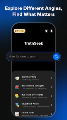 Looking to reconnect with an old friend, check out a new acquaintance, or discover someone’s online presence? With TruthSeek: DeepSearch AI Search Assistant, you can instantly access publicly available information about individuals—all in one easy-to-use app.