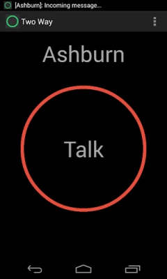 Two Way is a walkie talkie application that allows any number of users to talk to each other instantly. There is no signup required and no personal information is ever collected. Two Way's simple user interface is easy to use. Start talking to your friends, co-workers, or family members now.