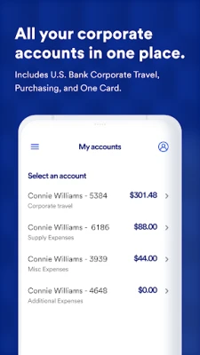 U.S. Bank Access Online Mobile is designed for commercial card customers who want secure, anytime access to their U.S. Bank Corporate Travel, Purchasing, or One Card accounts.