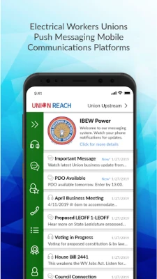 Union Reach is a specially designed mobile messaging platform, created to provide unions with a state-of-the-art push notifications system. Special Membership Benefits have also been added including a free conference call line for every union member who downloads the Union Reach mobile app. This conference line (bridge) supports up to 200 calls simultaneously. It offers you unlimited use and it's completely free!! Use for business, social, or even personal use. Get started using Union Reach today!