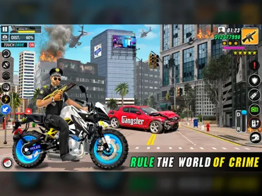 Get Indulged in thrilling Police moto bike riding, gangster car chasing and high-speed boat driving game with rescue and fps shooting mission. Enjoy free police chase motorbike game with gangster chasing duty. Accomplish all criminal escape missions with real gangsters. Police Moto Chase driving game, you will be involved in exciting city shooting of police car chase or police motorbike chase game missions.
