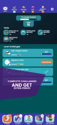* Perk System - every 5 levels get unique bonuses such as increased sell chance of a car.