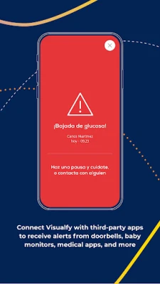 • Visualfy Home: If you have purchased our product for home accessibility, Visualfy Home, configure it easily from the app, customize the colours of the alerts, choose the devices where you want to receive them, invite your family to use it and much more.