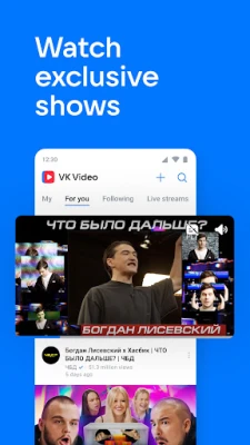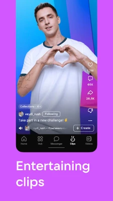 - Watch and create VK Clips, short vertical videos covering a wide range of themes.
