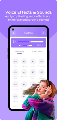 In this real voice changer app, there are two options for voice changer girl voices for WhatsApp chat. Effect of a girl’s voice apply on boy's voice and change a real voice male to female fake voice to make a friends fool when they play a girl's fake voice on WhatsApp voice notes.