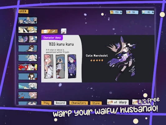 - Character Panel: View all the characters, items, and costumes you've obtained.