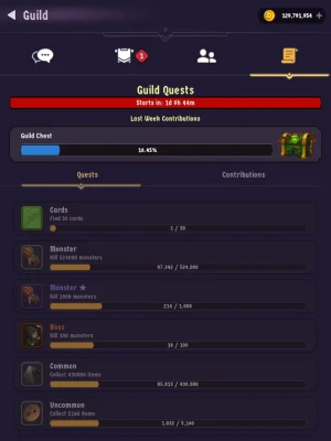 Missions (main quests, monsters hunting, item collect and daily tasks)