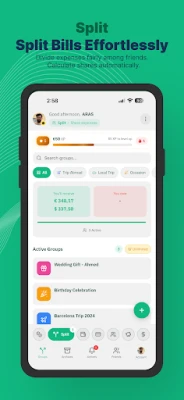 Split bills with friends, family, or roommates. Multiple split methods: equal, percentage, exact amounts, or shares.