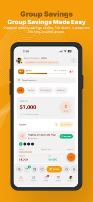 Traditional rotating savings made digital. Start or join savings circles with your trusted network.