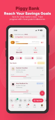 Set savings goals and track your progress. Invite friends to contribute to shared goals.