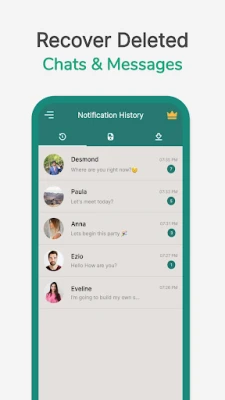 WAMR deleted messages recovery app uses your device notification history to recover recently deleted messages. And it immediately sends you a notification to notify about deleted messages and media files. WA messages are sent through encrypted channgel & WAMR Recover Deleted Messages app can’t access them directly. So, this WAMR Whats removed recover data of recently deleted messages from notifications & creates a backup for it. This WAMR recover works indirectly to save.