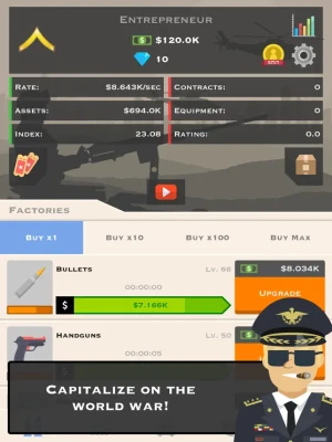 As you climb the ranks and raise enough capital you will be able to make deals with countries. From China to the United States there is no time to sit around. They say wars strengthen economies, just remember to make sure you get your cut.