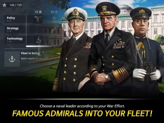 Enhance your warships with equipment, camouflages and crews, and assign historical admirals to command your squadron. The more you play, the bigger your influence gets.