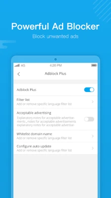 ● Ads Block: Integrated Ad Blocker to effectively block annoying ads, pop-ups, banners, as well as some specific JavaScript, to give you a comfortable browsing experience and make the page loading with a rapid speed, also reduce the internet data usage for users.