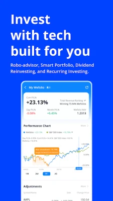 Advisory accounts and services are provided by Webull Advisors LLC (also known as "Webull Advisors"). Webull Advisors is an Investment Advisor registered with and regulated by the SEC under the Investment Advisors Act of 1940. Registration does not imply a level of skill or training. See additional information on the Disclosures webpage. Trades in your Webull Advisors account are executed by Webull Financial LLC. That means your assets are protected up to $500,000 in value, including $250,000 in any cash awaiting reinvestment.