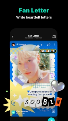 · Write and decorate fan letters to send your love and support to your favorite artists on Weverse.