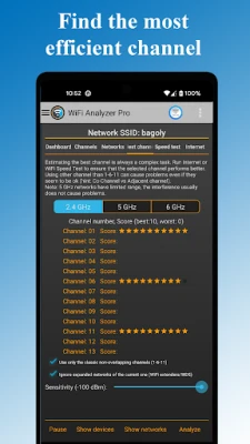 WiFi Analyzer Pro recommends the best channel and place for your router, get the best out of your WiFi!