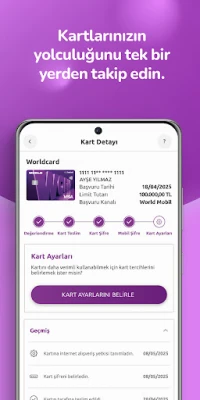 Kart Takibi menüsünden yeni başvurduğunuz ve yenilenen kartlarınızın her aşamasını görebilir, kartınızla ilgili tüm ayarları kartınızı kullanmaya başlamadan önce kolayca yapabilirsiniz.