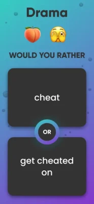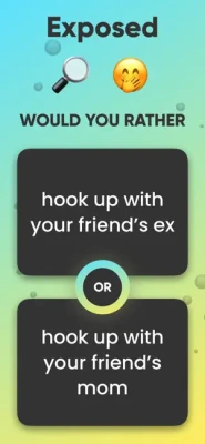Would you rather is a casual trivia game where you can get to know your friends better while making very hard choices the whole night.