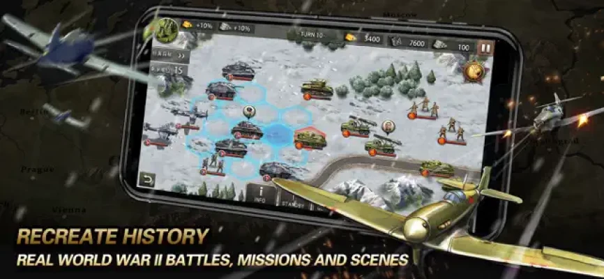 Rommel, Goodrian, Manstein, Zhukov, Konev, Rokosovsky, Vatukin and other famous generals of World War II will show you their unique tactics and their trump card troops. Guderian's Groß deutschland division, Zhukov's Moscow Defense War, as well as the famous trump army Viking Division, “Das Reich” Division, 3rd SS-Panzer-Division Totenkopf.